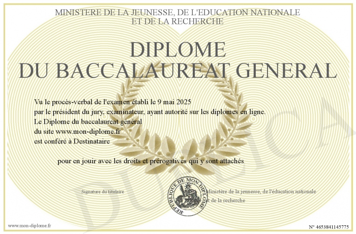 Diplôme gratuit a personnaliser :